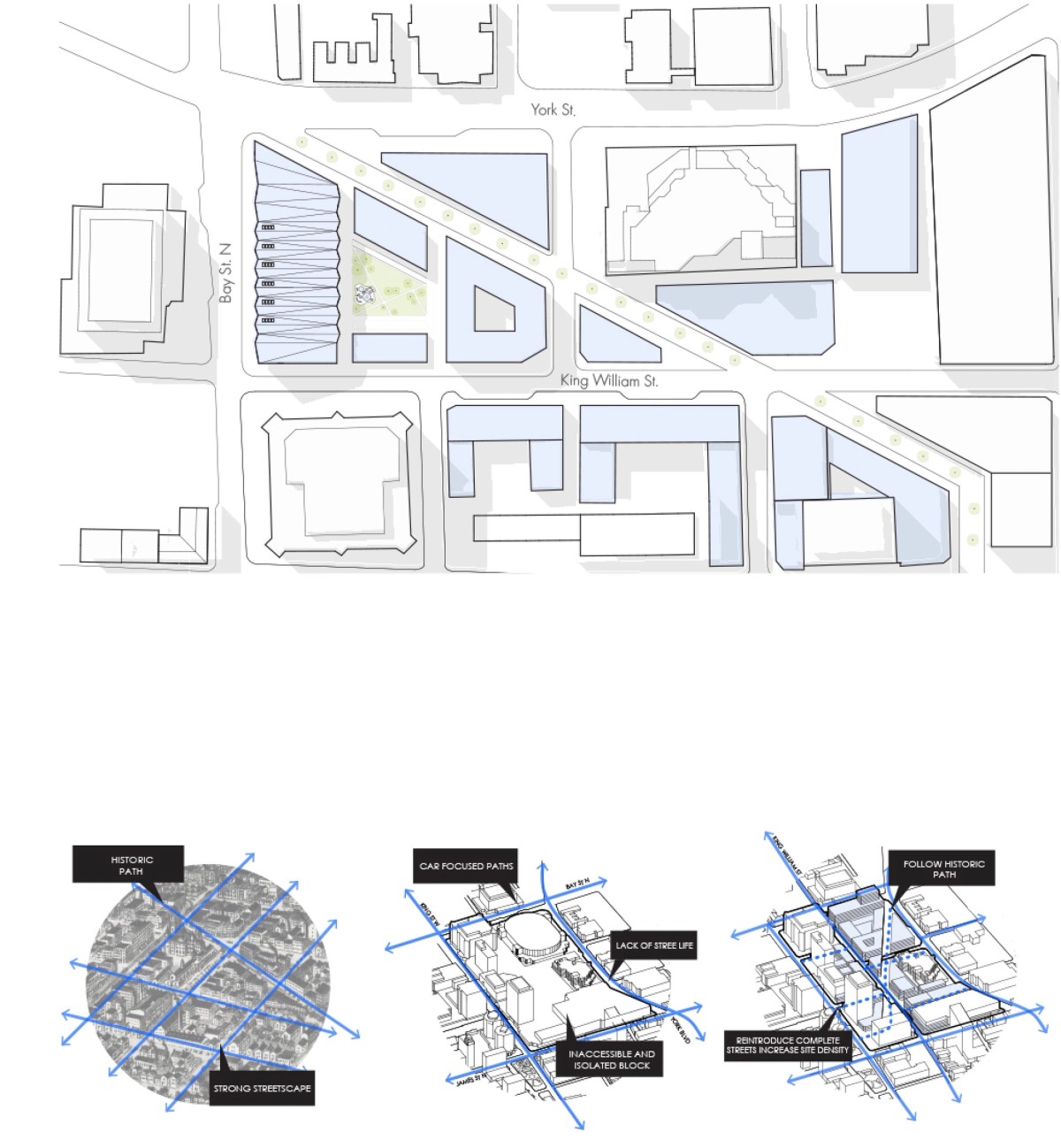 The elimination of pedestrian presence at street level formulated the isolation experienced at Jackson Square podium in Downtown Hamilton. The proposal of the Aquatic Centre is an opportunity to rethink the city through enhancement and restoration of public courtyards, the revival of strong landmarks, frontages, and street life. The JacksonSquare podium will be into smaller blocks and restore the grid of streets that existed two decades ago. Aiming to enhance sensory occurrences within the Aquatic Centre.