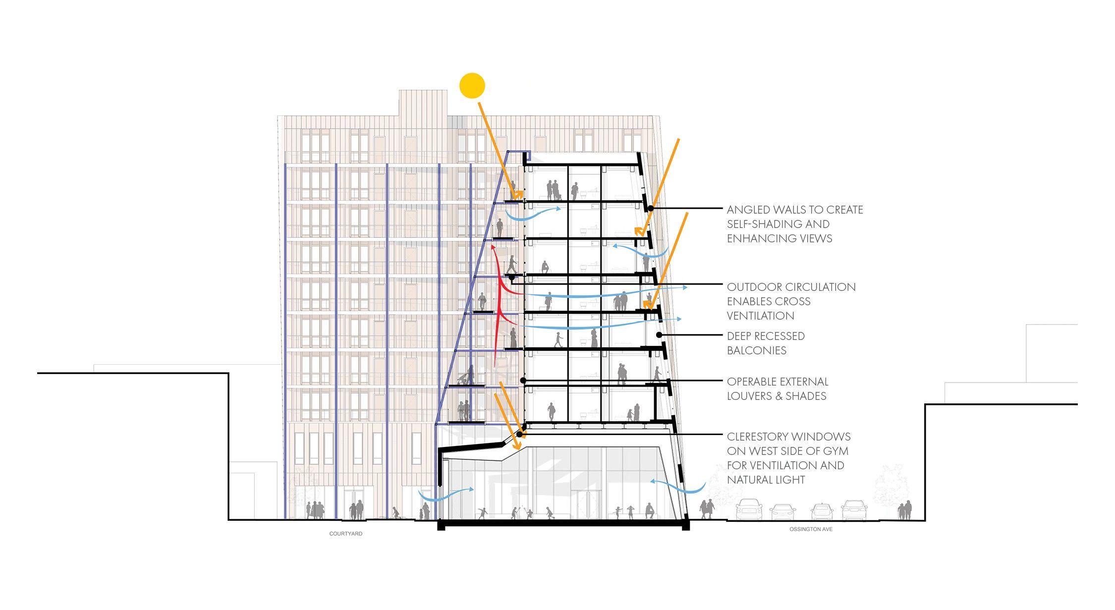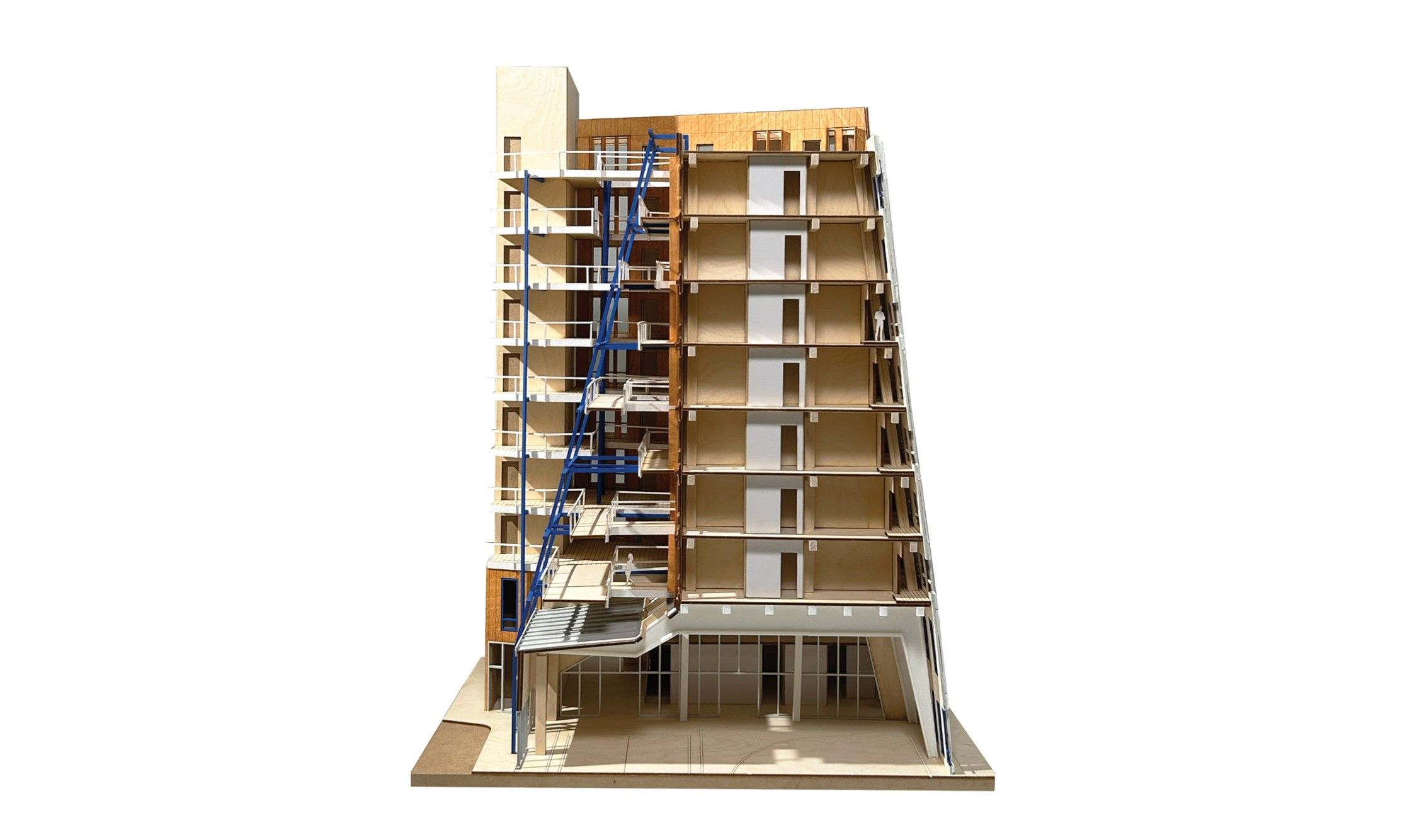 The Blue Path reimagines West Neighbourhood House’s 248 Ossington Avenue site as community-focused housing that combines living and gathering spaces. Designed as both a place to live and a place to look out onto the city, it rethinks typical multi-unit housing in Toronto to create a stronger relationship with the surrounding urban environment and to support West Neighbourhood House’s mission of affordable housing and public programming.